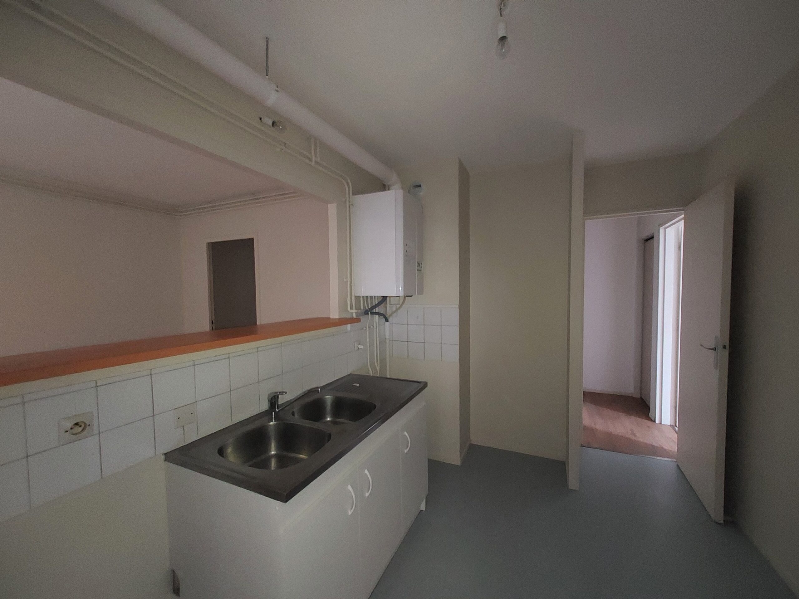 Appartement T3 fonctionnel comprenant un séjour avec balcon, une cuisine indépendante avec second balcon, deux chambres avec placards, une salle de bain avec rangement et WC séparés.