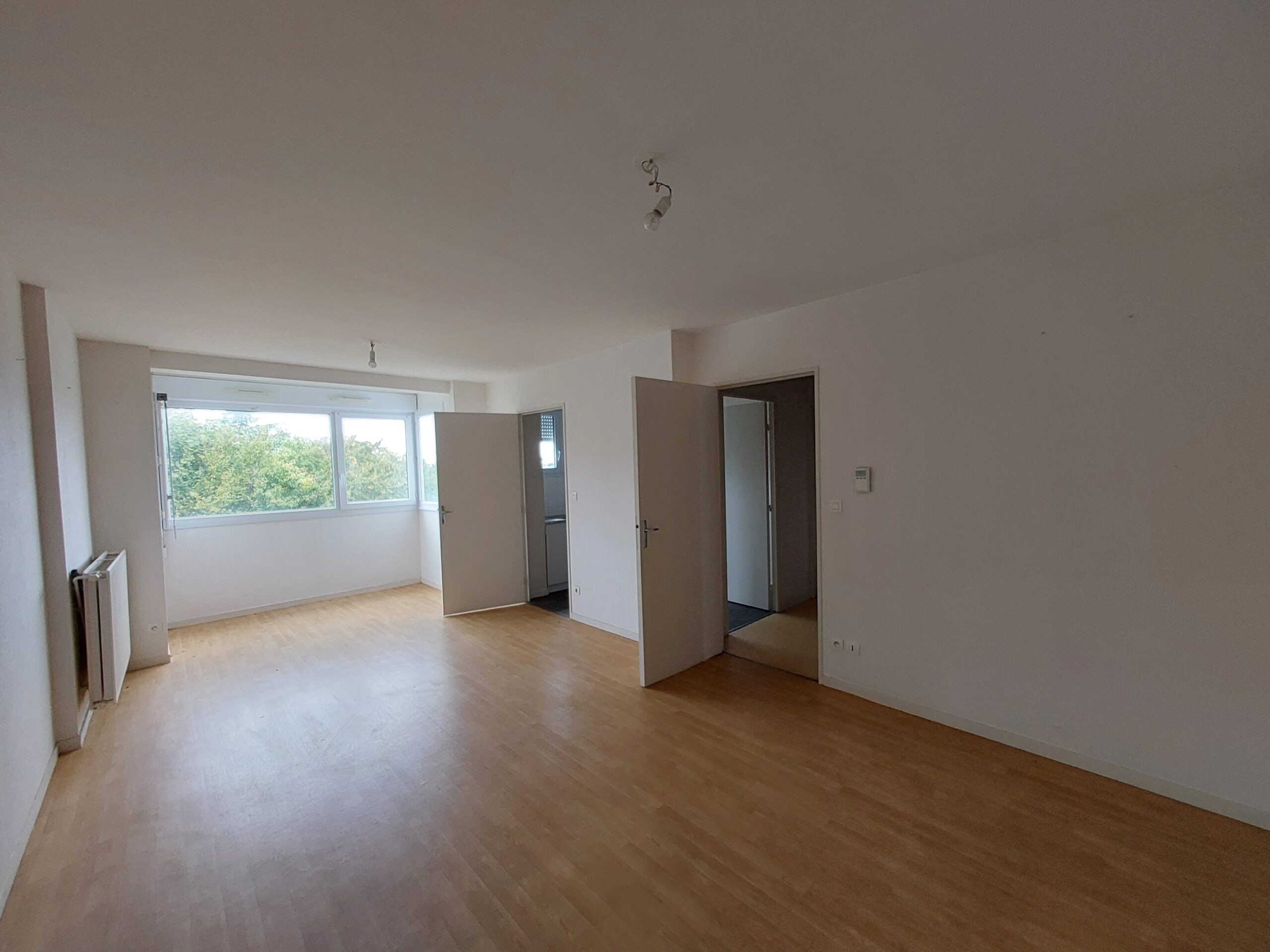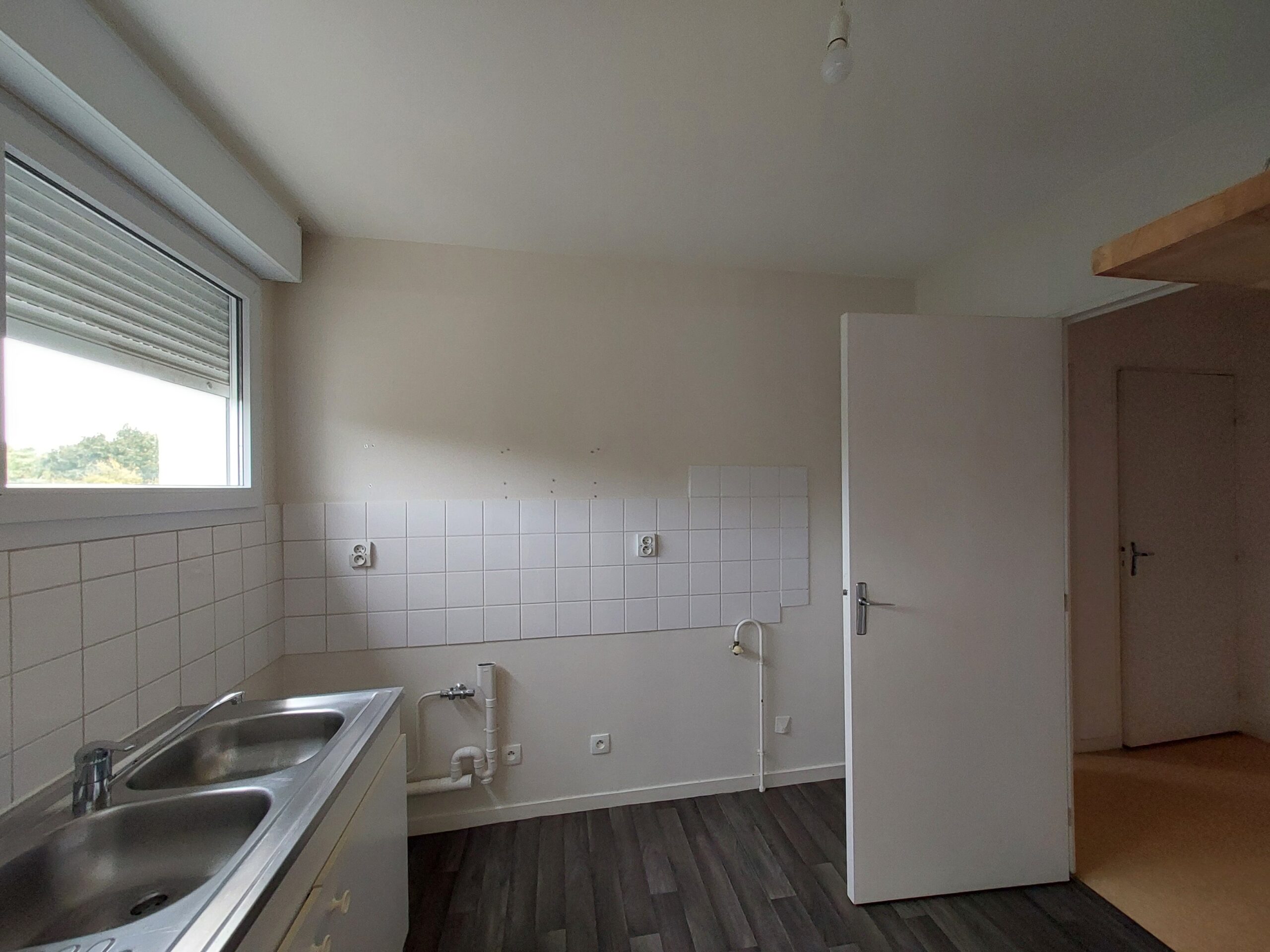 A louer appartement T2, comprenant une grande de pièce de vie, cuisine séparée, une chambre avec placard, une salle de bains et des WC séparés.