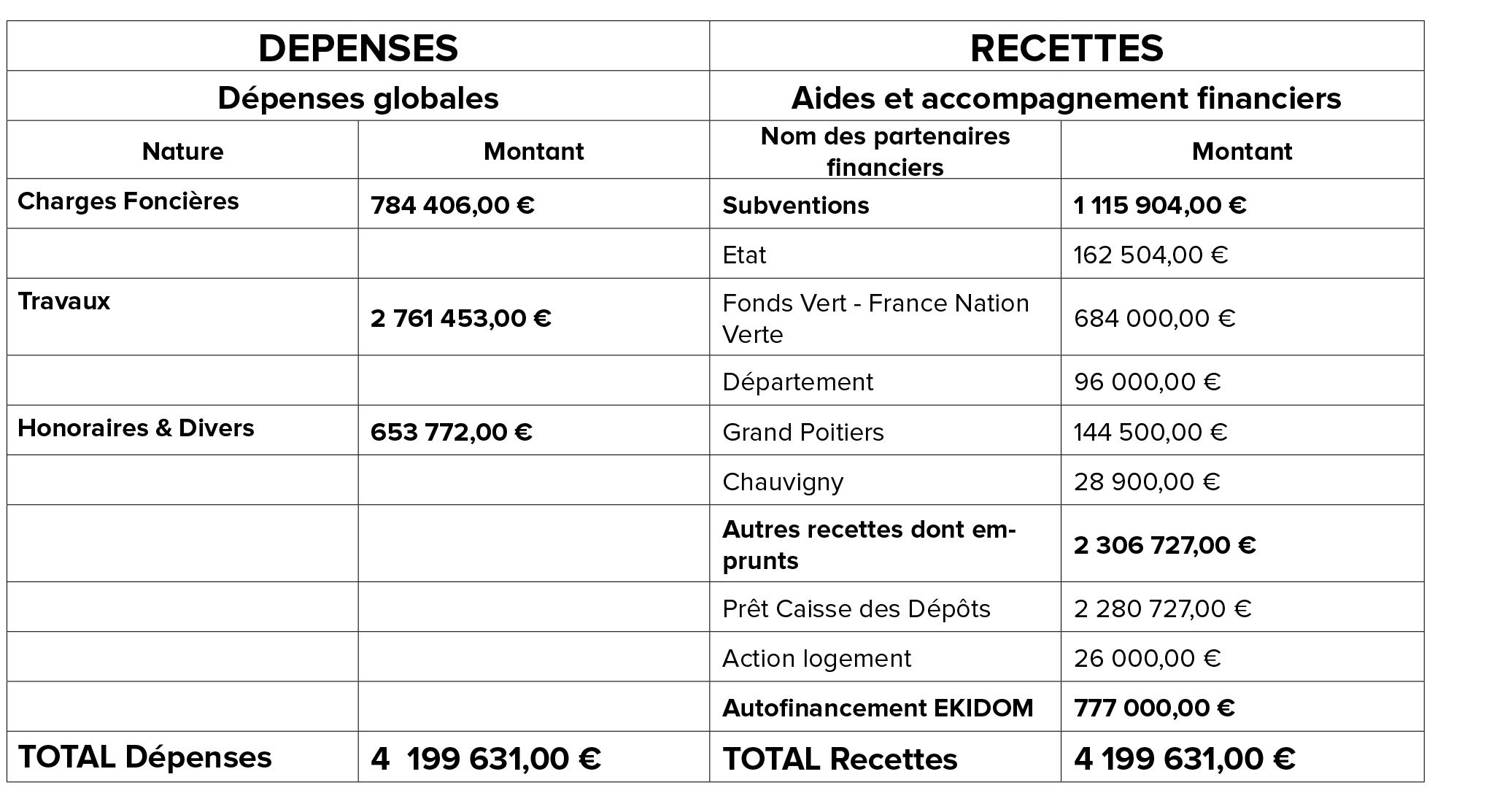 Ce projet exemplaire incarne une démarche à la fois écologique, sociale et patrimoniale, rendue possible par des financements publics engagés pour un avenir plus durable tels que l’Etat, le département de la Vienne, la Communauté d’Agglomération de Grand Poitiers, la ville de Chauvigny, Action Logement et la Banque des Territoires.
